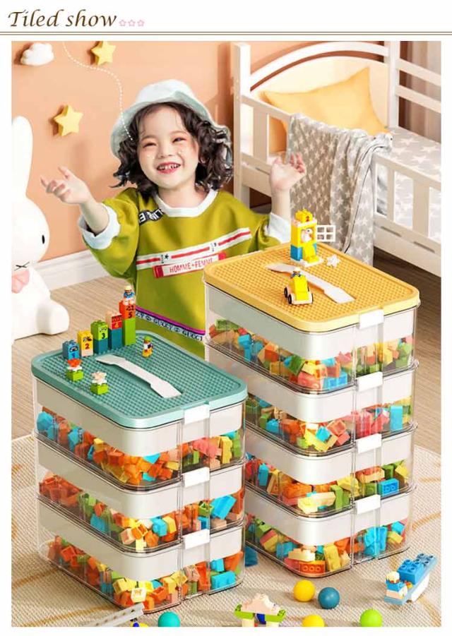 ボックス 蓋付き 収納ボックス クリア 防塵 小物 1段/2段/3段 収納箱 取っ手付き 子供部屋 仕切り/仕切りなし おもちゃ 収納 整理 ブロック 積み木 玩具収納