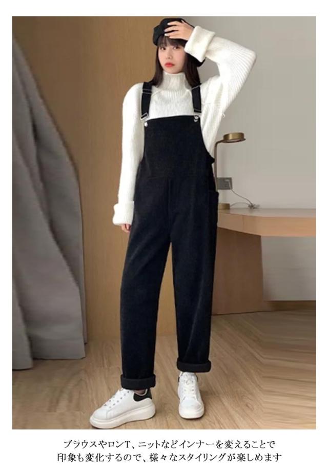 体型カバー パンツ カジュアル ワイドパンツ OL シンプル コーデュロイ風 サロペットパンツ レディース オーバーオール 着痩せ コーデュロイサロペット ロングパンツ ゆったり 無地 秋 春 サロペット 冬 オールインワン きれいめ 秋冬 パンツドレス