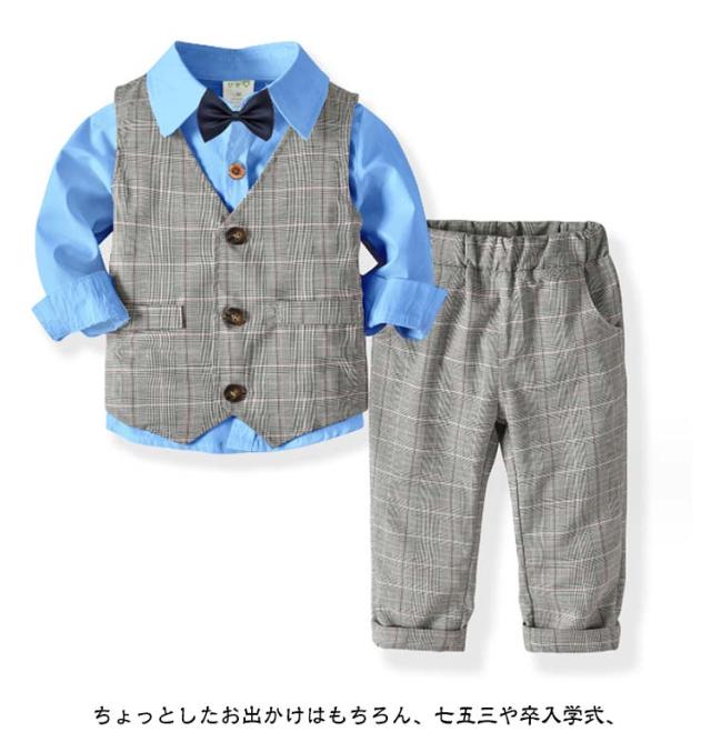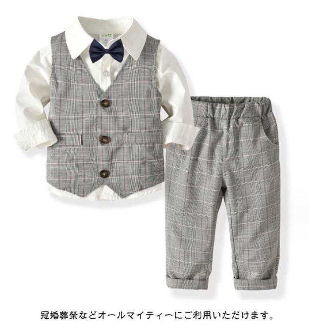 タキシード スーツ 小学生 卒業式 男の子 ベビー 子供 発表会 ベビー セットアップ フォーマル ストライプ 80~130cm チェック 初節句 結婚式 演奏会 発表会 おしゃれ 子供服 長袖 ベスト 端午の節句 百日祝い お食い初め 4点セット