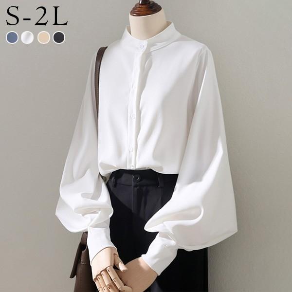 長袖シャツ パフスリーブ トップス 袖あり 長袖 ブラウス ステンカラー 韓国風 大人 可愛い かわいい 秋 春 夏 オフィス 通勤 20代 30代 40代 OL レディース ファッション ゆったり カジュアル おしゃれ dg284n1n1l9