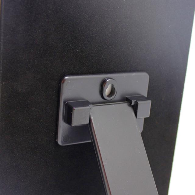 無段階角度調節ができるスタンド付きで裏面には壁掛け用に穴が付いていますので、ウォールミラーとしてもお使いいただけます。