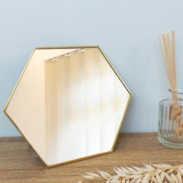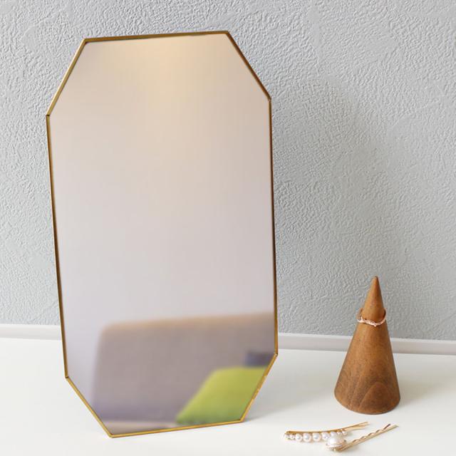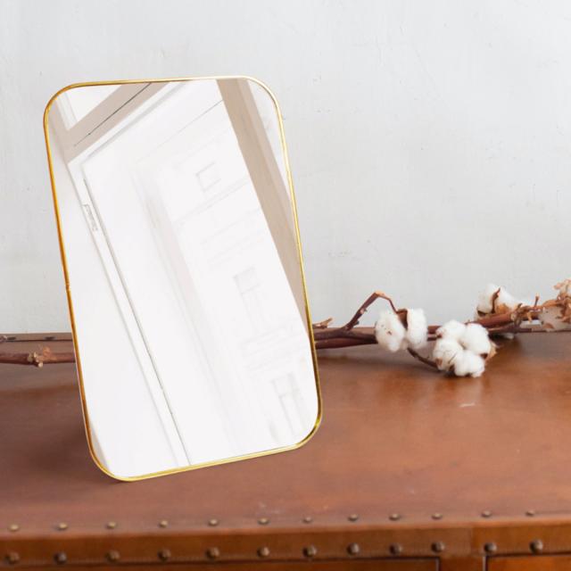 スタンド&ウォールミラー 真鍮ミラー 18×27.5cm 角丸 オディエ ( スタンドミラー 卓上 ミラー 鏡 壁掛け 角度調節 アンティーク調 ゴールド おしゃれ インテリア )