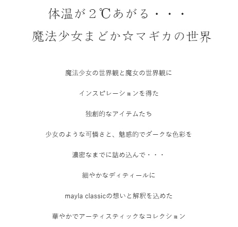 『体温が2℃あがる』をコンセプトに、普遍的な美と独創的な美が共存する唯一無二のクリエイションを生み出すブランドMAYLA(マイラ)。