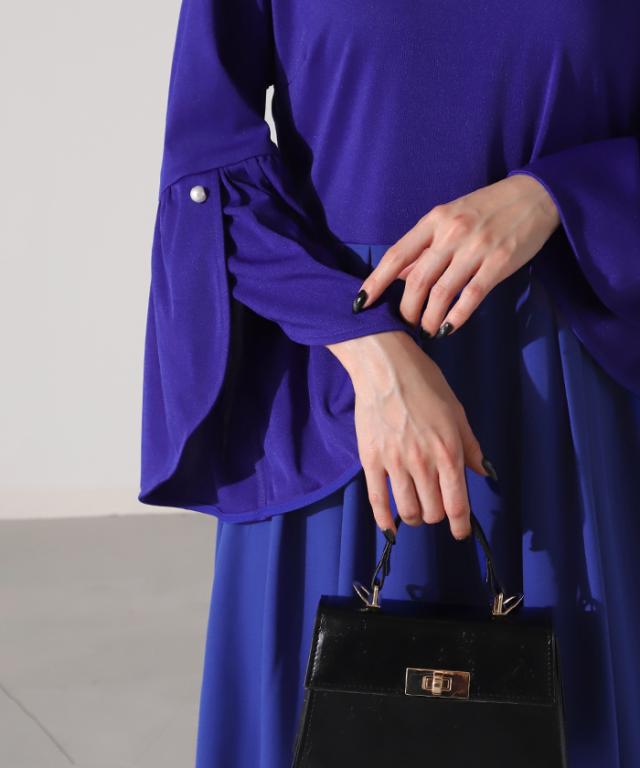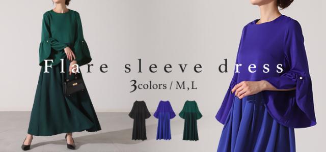 着こなし次第で様々なシーンに活躍するフレアスリーブの上品ワンピースです。
