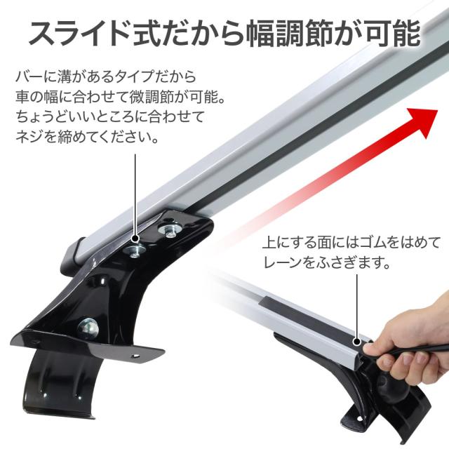 バーに溝があるタイプだから車の幅に合わせて微調節が可能です。