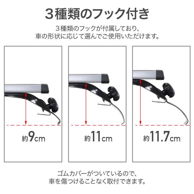 3種類のフックが付属しており、車の形状に応じて選んでご使用いただけます。