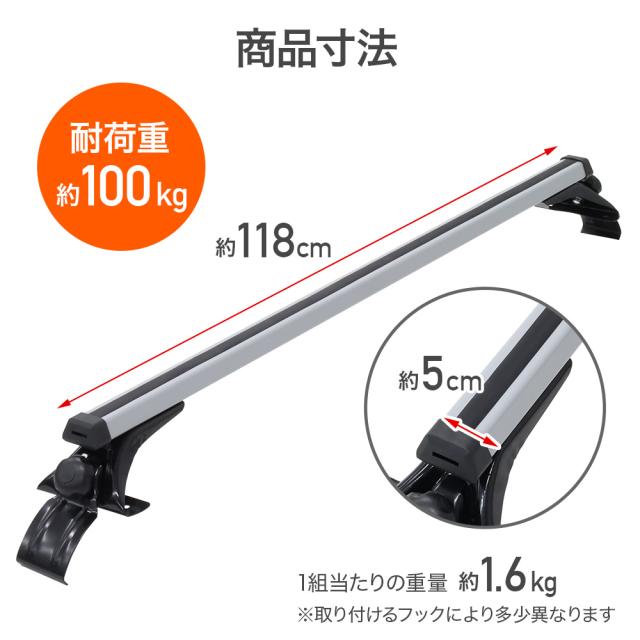 ルーフキャリア 2本セット アルミ 汎用 ベースキャリア 全長 119cm カーキャリア スキー スノーボード ウィンタースポーツ ベースラック 雨ドイ 取り付けタイプ 軽 車上 積載 ミニバン ハイルーフ 車 カー用品 送料無料