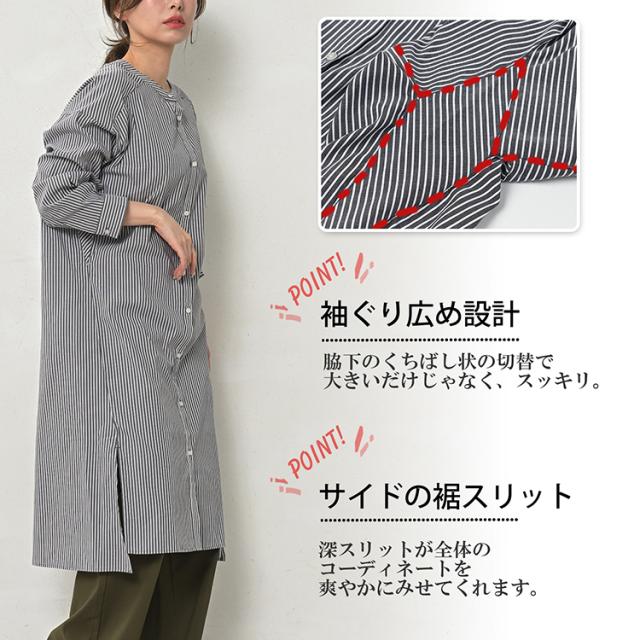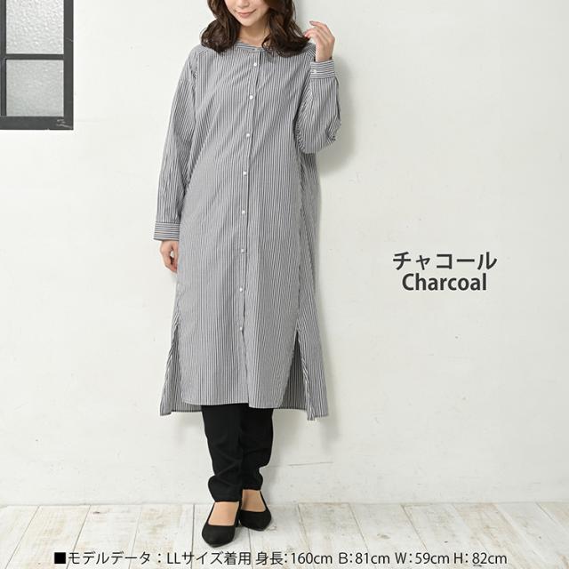 大きいサイズ レディース 長袖ワンピース シャツワンピース ロング丈ワンピース ロングワンピース ノーカラーワンピース 羽織り 前開きボタン フロントボタン ロング丈 アンクル丈 ミモレ丈 ストライプ柄 縞模様 Uネック ラウンドネック クルーネック 丸首 すっきり見せ 脇下くちばしカット バストすっきり ゆったり腕幅 腕の上げ下げが楽 動きやすい 肩まわり動かしやすい サイドスリット ステップヘム バックテール 春服 秋服 春物 秋物 春ワンピース 秋ワンピース 春ワンピ 秋ワンピ 二の腕カバー 大人 カジュアル フェミニン シンプル レトロ 上品 きれいめ かわいい かっこいい 着こなし おしゃれ 定番 春コーデ 秋コーデ ファッション 大きめ 女性 婦人用 ミセス 30代 40代 50代 2024 春 秋 灰色 LL 3L 4L 5L 13号 15号 17号 19号 cbi-sa-op0307