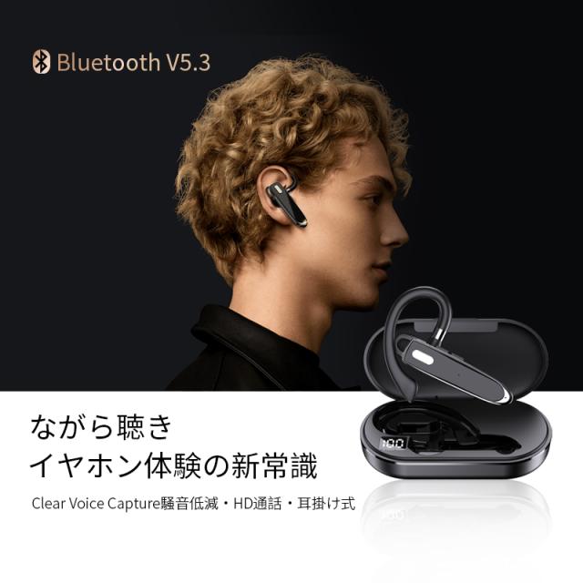 ワイヤレスイヤホン Bluetooth5.3 耳掛け式 片耳タイプ 周囲の音が聞こえる マイク内蔵 左右耳兼用 CVCノイズリダクション HiFi 高音質 【PL保険加入済み製品・安心】