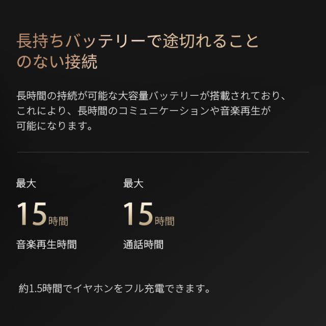 3.イヤホンには120mAhの大容量バッテリーが搭載、長時間の持続作動をサポートする。