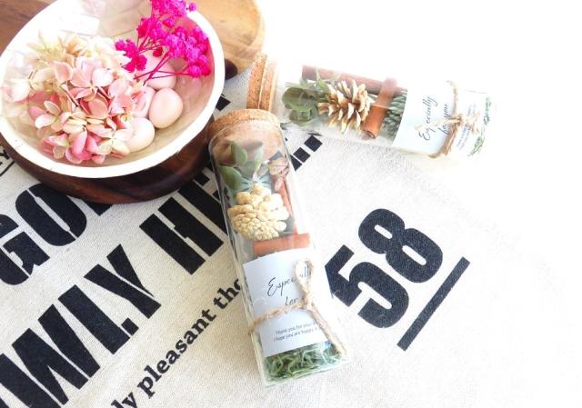 個性的で人気の高い多肉植物を中心としたアレンジメント、バランスのとれたデザインが魅力のガラスシリンダーシリーズ。可愛らしく自然な雰囲気にまとめられたデザインは北欧、アジアン、カントリー調など様々なテイストのお部屋に良く馴染む。