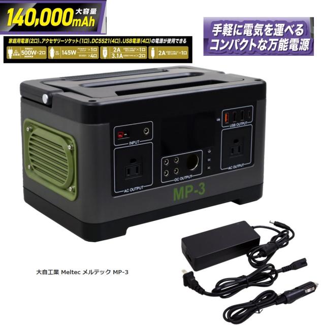 大自工業 Meltec メルテック MP-3 大容量 ポータブル電源 140000mAh /519W(システム電源) バッテリー