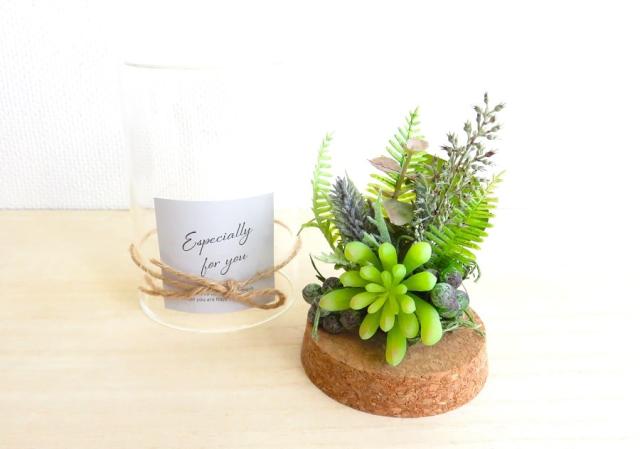 個性的で人気の高い多肉植物を中心としたアレンジメント、バランスのとれたデザインが魅力のガラスシリンダーシリーズ。可愛らしく自然な雰囲気にまとめられたデザインは北欧、アジアン、カントリー調など様々なテイストのお部屋に良く馴染む。
