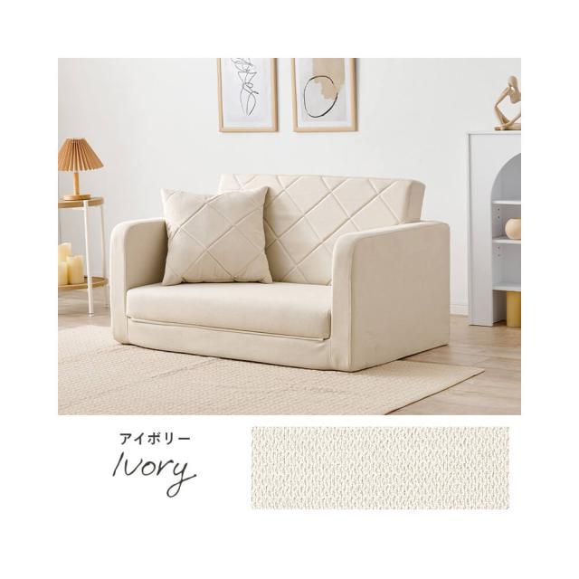 ソファ ソファベッド 簡易ベッド リクライニング キルティング クッション付き 折りたたみ ワンルーム 一人暮らし アイボリー