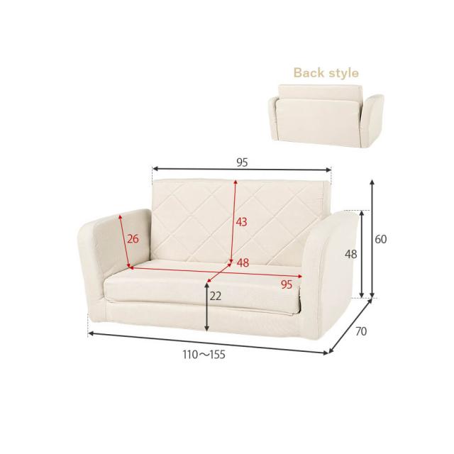 幅 110〜155cm × 奥行 70 / 180cm × 高さ 60 / 48cm × 座面高 22/11cm素材