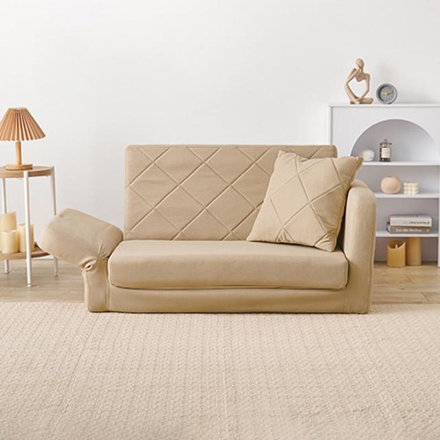 座面を広げると簡易ベッドに変身。使い方に合わせて広がる幅が調整可能で、日中のくつろぎから夜の休息まで対応します。