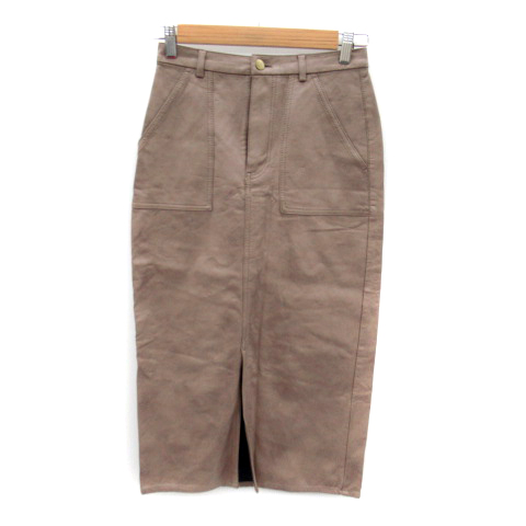 【中古】チャオパニック フェイクレザースカート タイトスカート ロング丈 スリット 無地 M グレージュ レディース