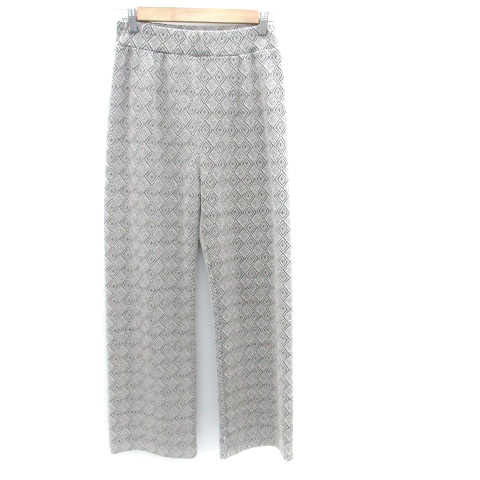 【中古】ジーナシス JEANASIS ワイドパンツ イージーパンツ アンクル丈 総柄 F グレー 黒 ブラック /HO25 レディース