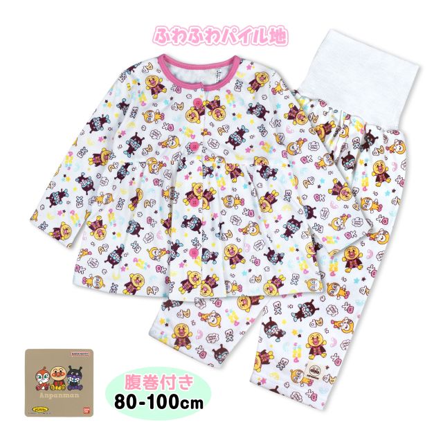 アンパンマン ふわふわパイル地 腹巻き付き 長袖パジャマ 。