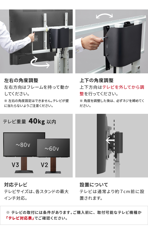 【キーワード】 壁寄せテレビスタンド 首振り ブランケット オプション 画面 角度調整