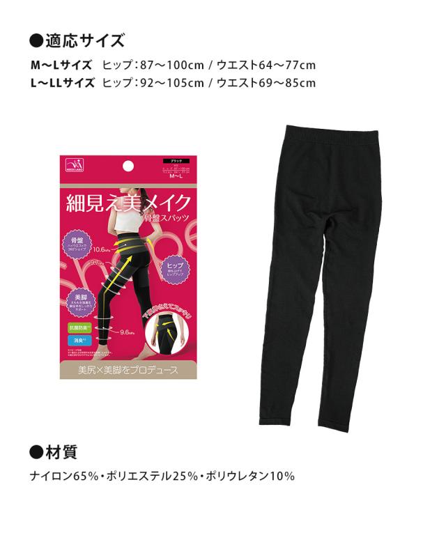 細見え美メイク骨盤スパッツ!おでかけもおうち時間もはいて実感!これ1枚でしっかり美メイクしっかりした着圧で骨盤まわり・下腹を引き締め!これ1枚でメリハリボディライン。伸縮性のある生地で快適な着心地で、おうち時間やヨガにぴったり。太ももから下はラインがないので外出時にも使えます。材質/ナイロン65%・ポリエステル25%・ポリウレタン10%適応サイズ/M〜L:ヒップ:87〜100cm・ウエスト64〜77cm、L〜LL:ヒップ:92〜105cm・ウエスト69〜85cm洗濯について/洗濯機(ネット使用)