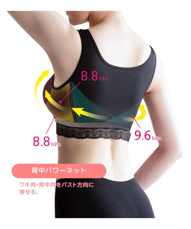 見た目はスッキリなのに、実は胸下・ワキ・背中部分にはパワーネットを内蔵したシークレット着圧が!