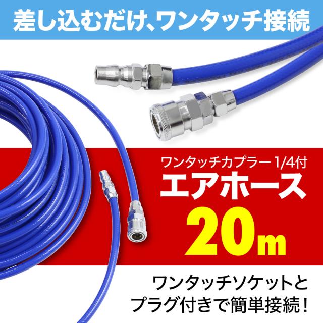 寒冷地用 エアーホース エアホース 20m エアーツール ホース エアーチューブ 外径10mm 内径6.5mm ワンタッチカプラー1/4 プラグ付 ソケット付 ワンタッチ コンプレッサー
