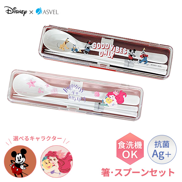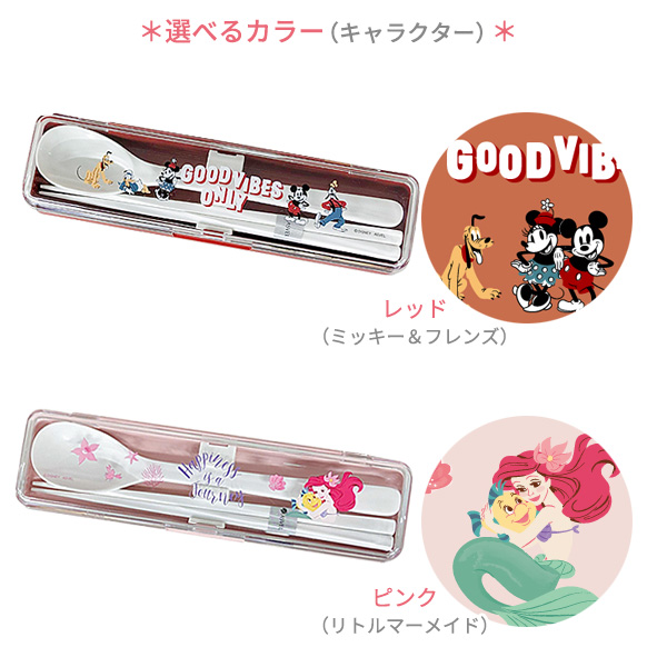 弁当 箸 箸・スプーンセット | ディズニー カトラリーセット ハシ スプーン ケース付き 箸箱 ハシセット 携帯用箸 入学 新生活 ミッキー リトルマーメイド