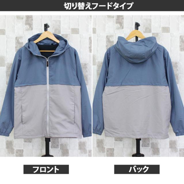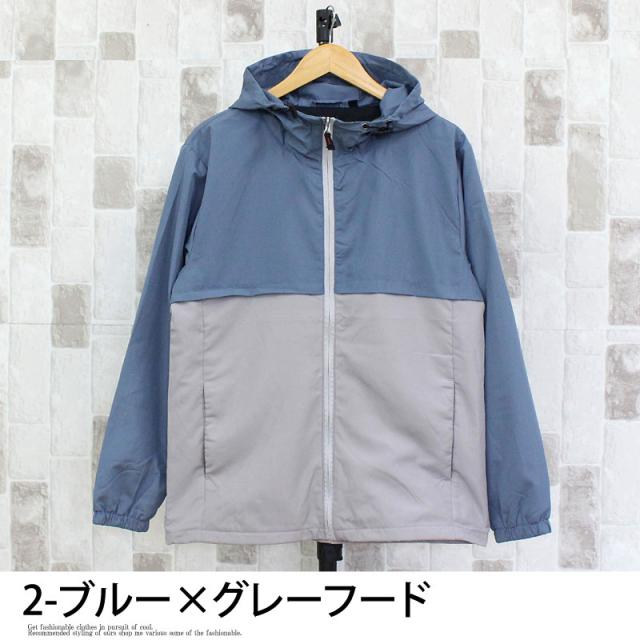 送料無料 マウンテンパーカー メンズ ウインドブレーカー 無地 配色切替 撥水加工 UVカット 裏地 トリコット キャンプ スポーツ アウトドア ランニング サイクリング フィッシング ネコポス