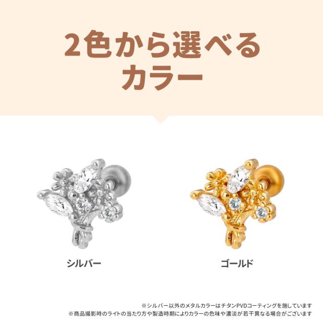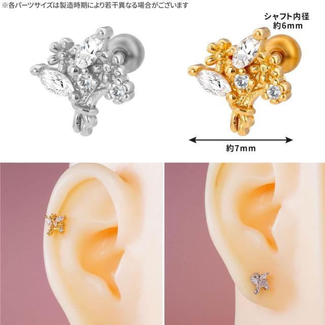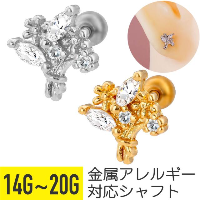 フラワー ブーケ ビジュー ストレートバーベル 14G 16G 18G 20G サージカルステンレス ジルコニア ヘリックス 軟骨ピアス ボディピアス