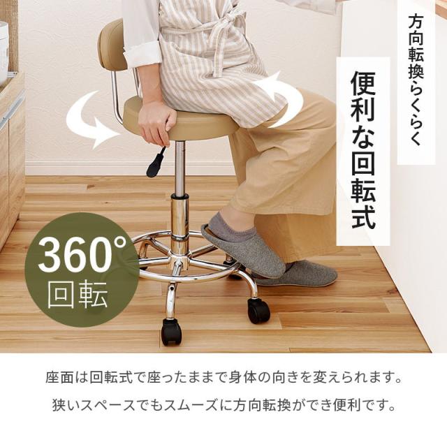 カウンターチェア おしゃれ バーチェア キッチンチェア ハイスツール 昇降式 高さ調節 キャスター付き 回転椅子 背もたれ付き