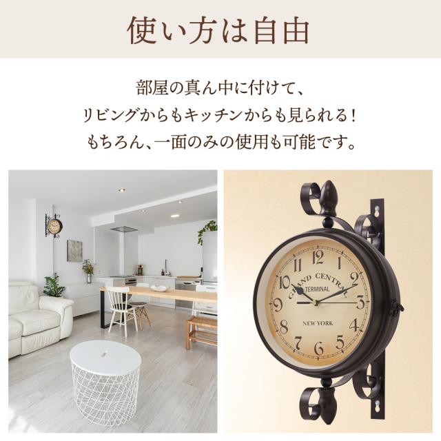掛け時計 レトロ アンティーク 両面 360度回転 両面掛け時計 おしゃれ インテリア 電池式 屋内 リビング キッチン 寝室 子供部屋 北欧 クロック