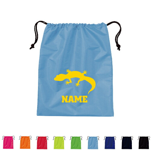 トカゲ 名入れシューズバッグ 卒団記念品 靴入れ 上履き入れ 巾着袋 部活 ヒョウモントカゲモドキ 爬虫類 習い事 文化部 卒部祝い 卒団祝い 卒業記念品 卒業祝い 引退記念 体操着入れ