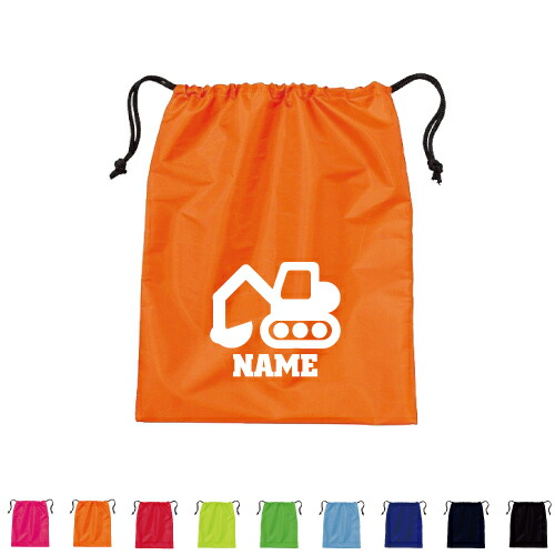 ショベルカー 名入れシューズバッグ 卒団記念品 靴入れ 上履き入れ 巾着袋 部活 習い事 体操着入れ 乗り物 車 はたらく 趣味