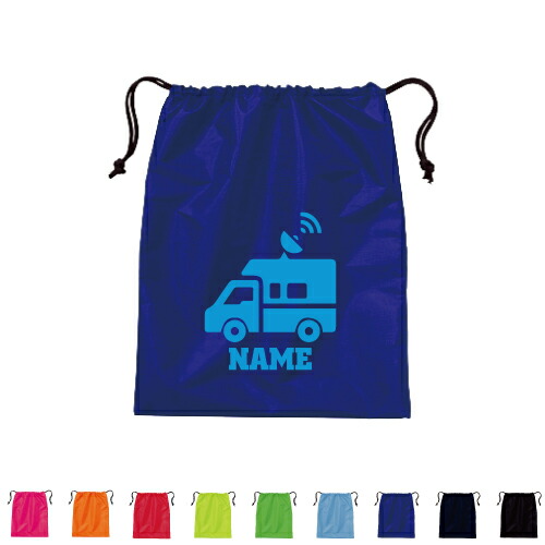 TV中継車 名入れシューズバッグ 卒団記念品 靴入れ 上履き入れ 巾着袋 部活 習い事 体操着入れ 乗り物 車 はたらく 趣味