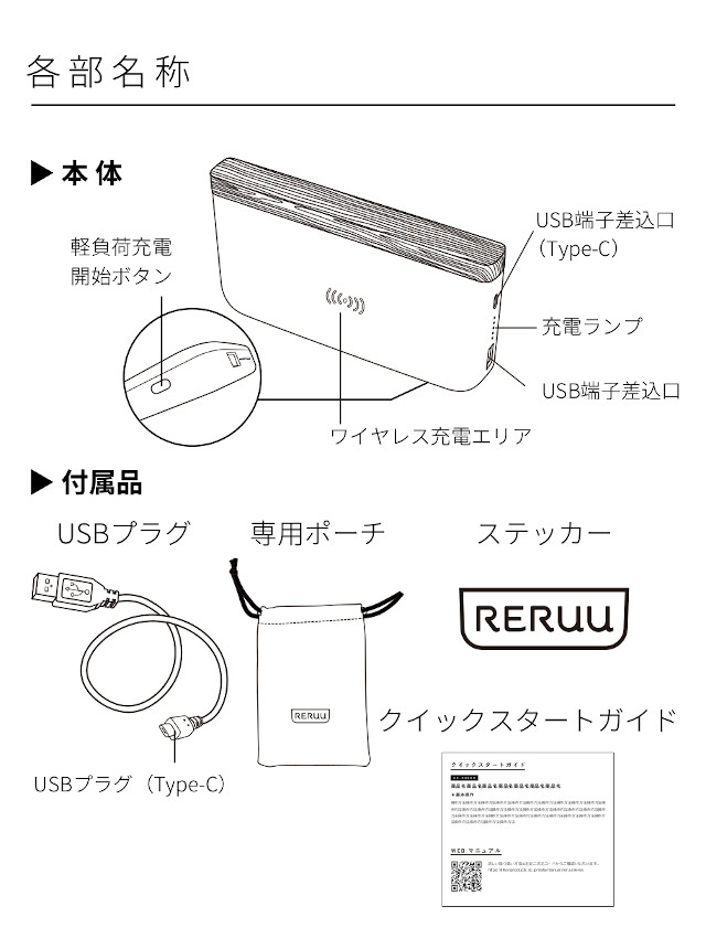 RERUU モバイルバッテリー 10000mAh ワイヤレス充電機能付 PD準拠 RE-EA002【レルー モバイルバッテリー 大容量 軽量 小型 薄型 10000mah ワイヤレス スマホ 充電器 充電 バッテリー ギフト 母の日 父の日 敬老の日 クリスマス Xmas】