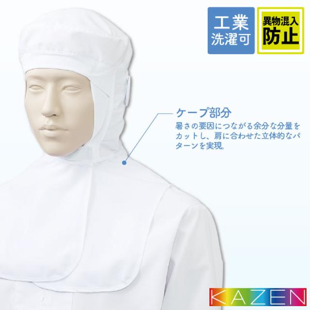 カゼン 衛生帽子 ケープ付 メンズ レディース 工業洗濯可 食品工場 白衣 調理白衣 食品白衣 衛生白衣 衛生衣 衛生管理 食品加工 食品製造 厨房 飲食 フードユニフォーム キャップ 制服 KAZEN ネコポス kz-kzn482-10
