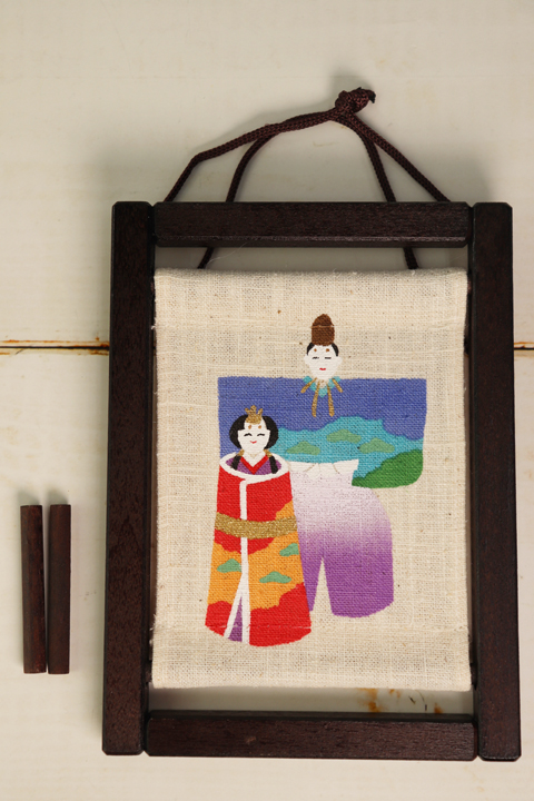 ミニ 木枠タペストリー 立雛 送料無料 ゆうパケット 春 麻 インテリア 和風 季節感 海外土産 お雛様 ひな祭り