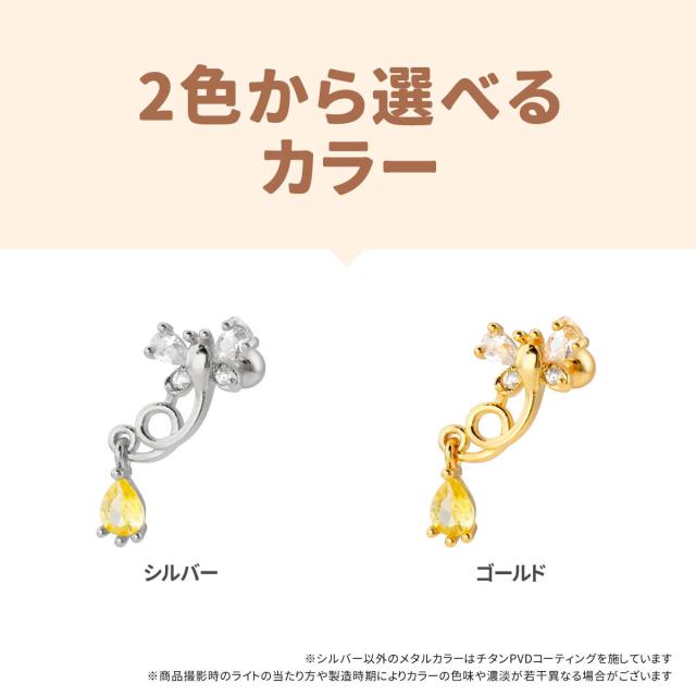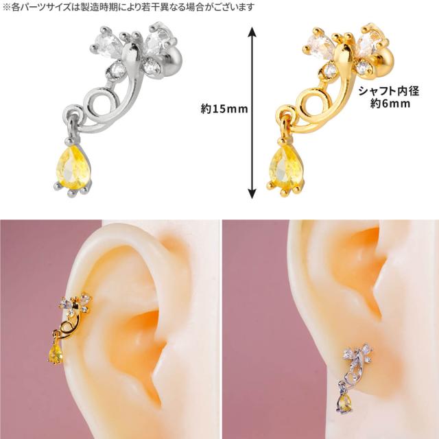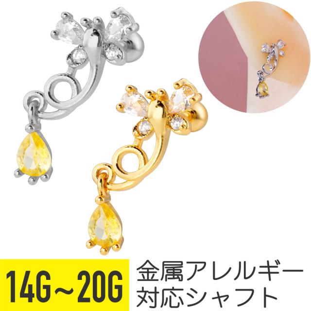 イエロー ドロップ ジュエル チャーム バタフライ ストレートバーベル 14G 16G 18G 20G ステンレス ヘリックス 軟骨ピアス ボディピアス