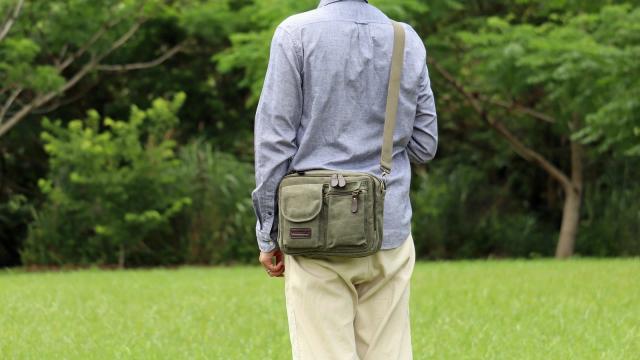 ショルダー調節で斜め掛けも肩掛けも・・・。