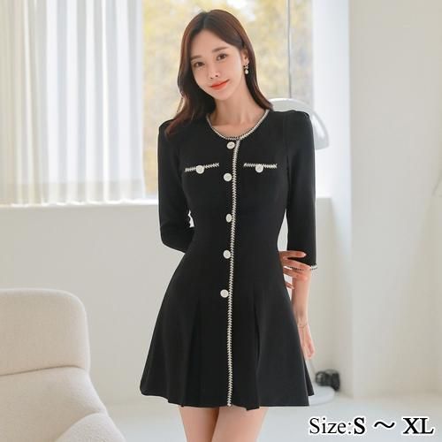 【グラシア】 キャバ ドレス キャバドレス ワンピース ミニドレス カジュアル ふんわり プリーツ 華奢 すっきり パフスリーブ 魅せる ブラック S M L XL