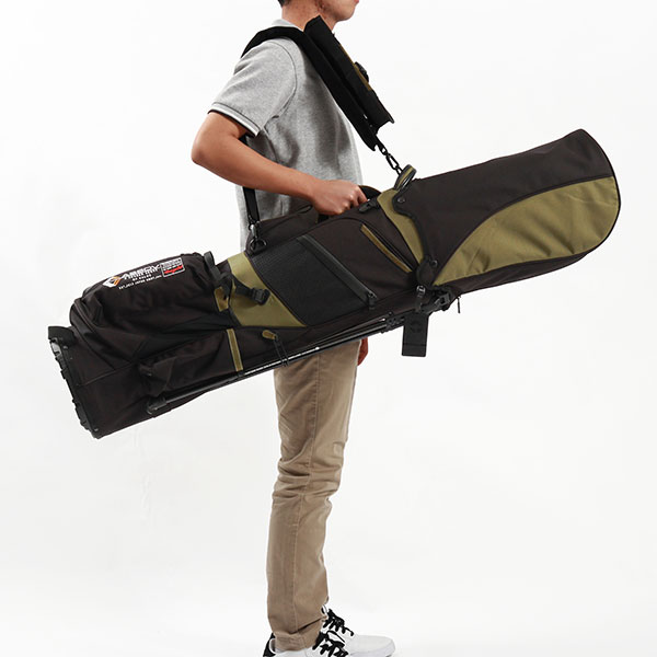 付属のクラブキャリーケースは、パターやショートアイアンなどを収納して身軽に持ち運ぶことが出来る便利なアイテム。マグネットパーツで簡単に取り外しができ、未使用時はストラップ部分に装着可能です。外部にはマグネット開閉のボールポケット、ドリンクポケット、アウトドアバッグのようなアウターポケットなど豊富なポケットを複数装備しています。