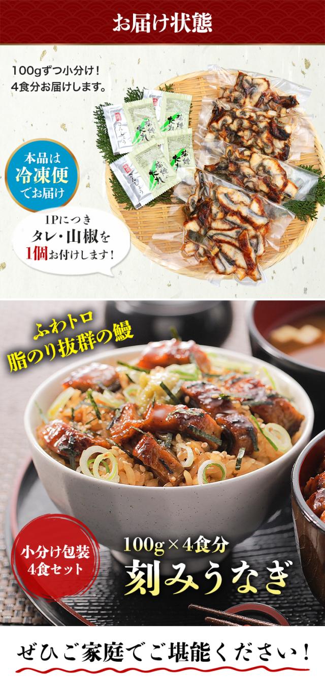 ひつまぶし 4食 刻みうなぎ蒲焼 たれ山椒4P付き 400g(100g×4)真空パック うな茶漬け 衛生的 うな飯 鰻 うなぎ ウナギ かばやき 鰻蒲焼 うな重 冷凍 ギフト グルメ 食品 クーポン ギフト プレゼント の日 刻み きざみ