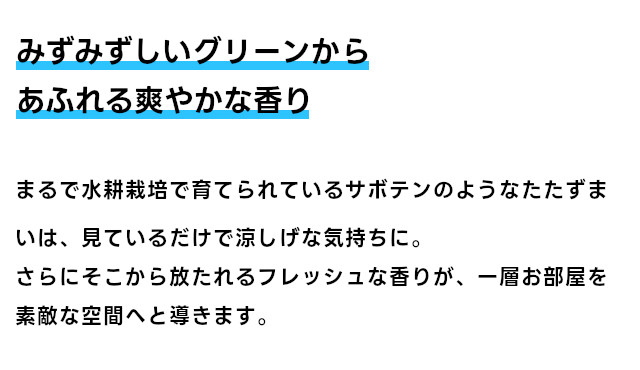 さらにそこから放たれるフレッシュな香りが、一層お部屋を素敵な空間へと導きます。