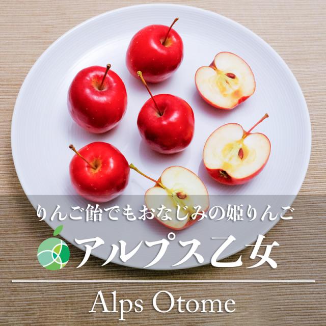 アルプス乙女は直径5cm前後の小さな食用の姫りんごです。ふじとヒメリンゴのかけ合わせによって、長野県の農場で偶然生まれた品種だと言われています。
