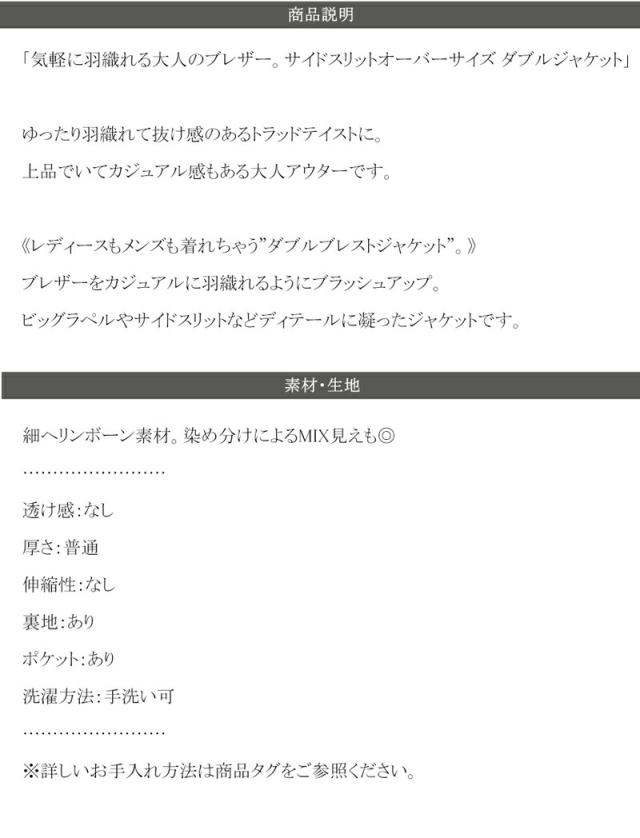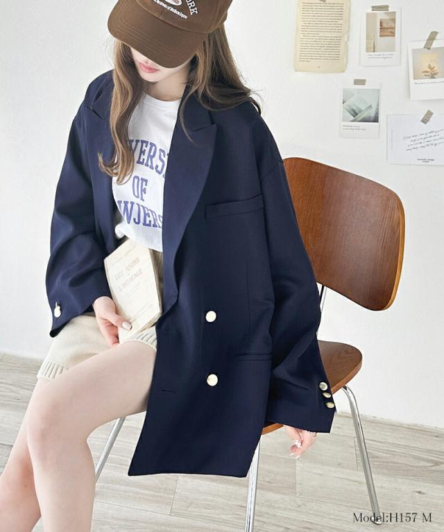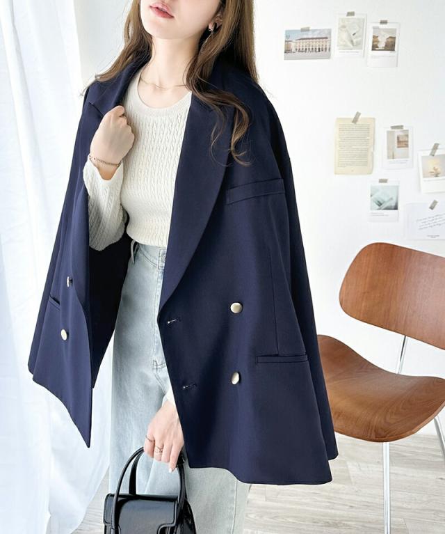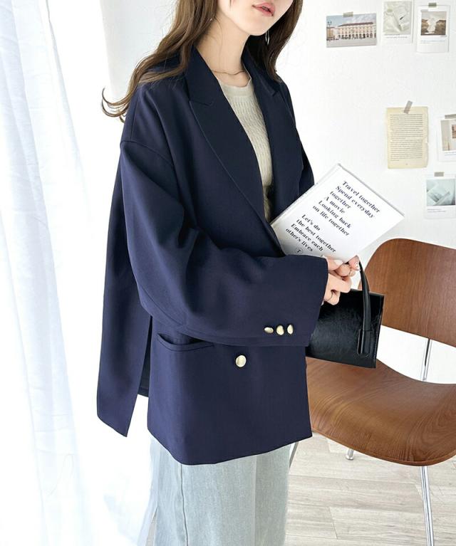 ★気軽に羽織れる大人のブレザー。サイドスリットオーバーサイズ ダブルジャケット★