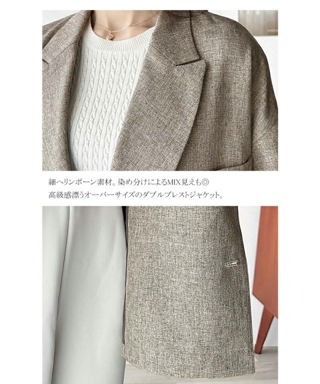クラシカルエルフ 冬新作 アウター ジャケット レディース サイド スリット オーバー サイズ ダブルジャケット JK ヘリンボーン生地 男女兼用 ユニセックス ゆったり ビッグシルエット 大きいサイズ 2024ss ce1260162
