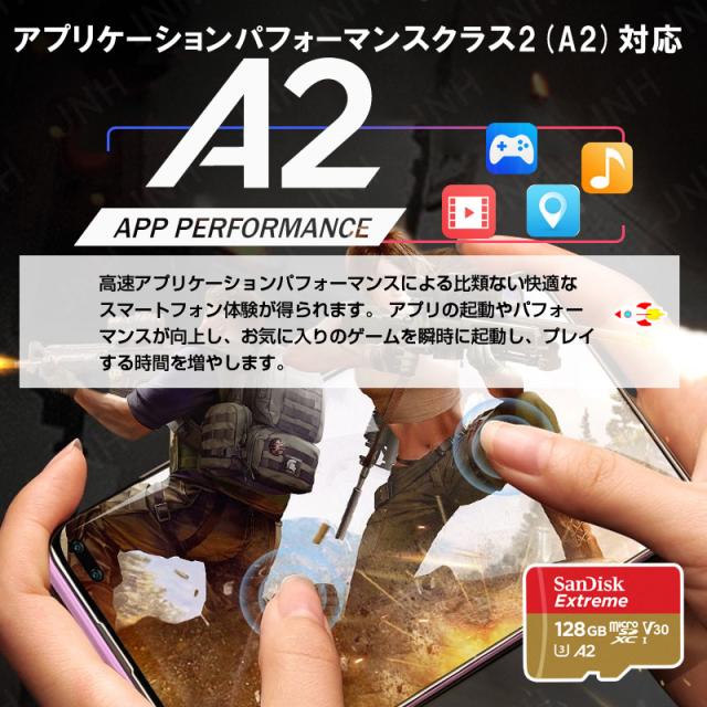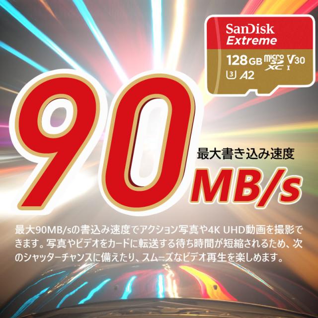 microSDXCカード 128GB SanDisk Extreme V30 A2 R:190MB/s W:90MB/s UHS-I U3 Class10 SDSQXAA-128GマイクロSDカード海外パッケージ ポイント消化