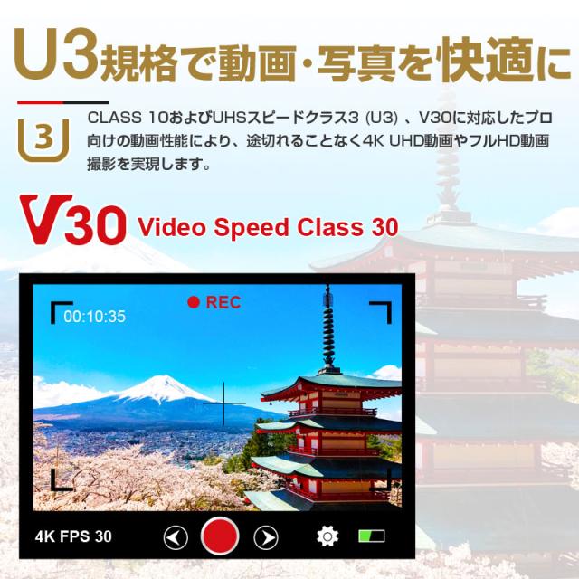 * スピードクラス:UHSスピードクラス3、SDスピードクラス CLASS 10