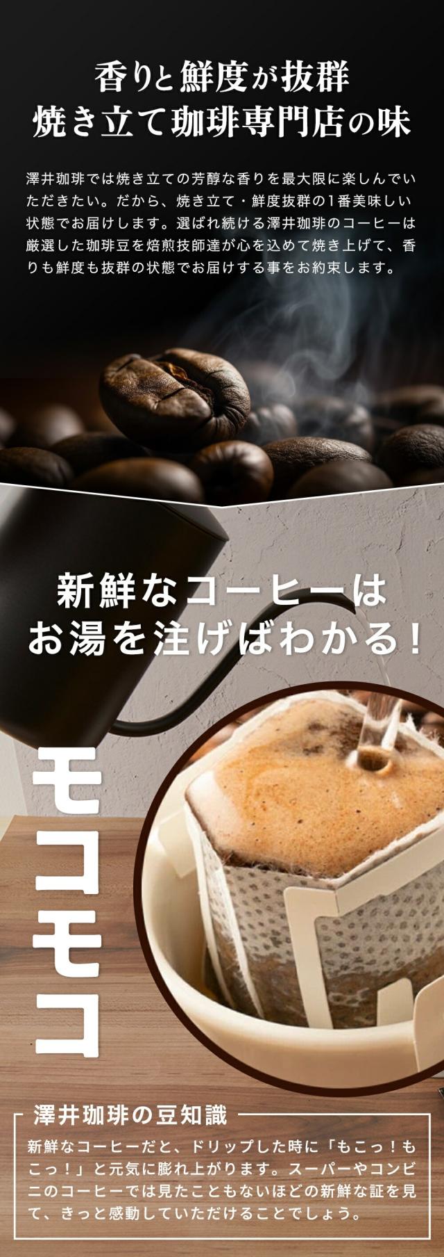 澤井珈琲(さわいこーひー)では、お客様のお家に商品が届き、箱を開けた瞬間。そして、トレードマークの赤いコーヒー袋の封を開けた時に鮮度抜群の「香り高さ」と、飲んだときの「味わい」に感動して頂けるように、レギュラーコーヒーはご注文を頂いてから焙煎をして焼きたてのコーヒー、コーヒー豆、珈琲、珈琲豆をお届けをしている焼き立て珈琲専門店です。お客様に「美味しい」と言って喜んで頂く事が私たちの喜びと思ってます。「美味しいコーヒーをお届けしたい」と想い続けて生まれたこだわりの味を、どうぞ、この機会にお楽しみくださいませ。澤井珈琲では、コーヒー豆は挽き方がご選択いただけます。珈琲豆を挽く事をお楽しみ頂ける『豆のまま』や、私共の専用の特注サイズの大型のミルで挽いて、コーヒー粉の状態にしてお届けする方法がございます。中挽き、細挽き、粗挽き、荒挽きなど様々な挽き方がございますが、私共がお薦めする『店長のおすすめ挽き』にて、そのコーヒーに合った一番美味しいと思える挽き方に挽いてお届けします。東京の銀座にも実店舗を構え、都内では浅草やスカイツリーのあるソラマチにも出店。「鳥取のコーヒー屋さん」とも呼ばれてますが、空気が綺麗で自然豊かな鳥取県に焙煎工場を構え、隣接する島根県の松江市や出雲市にも実店舗がございます。顔の見えないネット通販ですが、全国11店舗を展開する安心安全な澤井珈琲は、特徴的な「赤いコーヒー袋」に入れて、全国の珈琲好きにお選び頂いてます。よく間違えられる名前として、沢井珈琲、沢井コーヒー、澤井珈琲店、澤井珈琲本店、さわいこーひー、サワイコーヒーなどがございますが、正式名称は澤井珈琲となります。